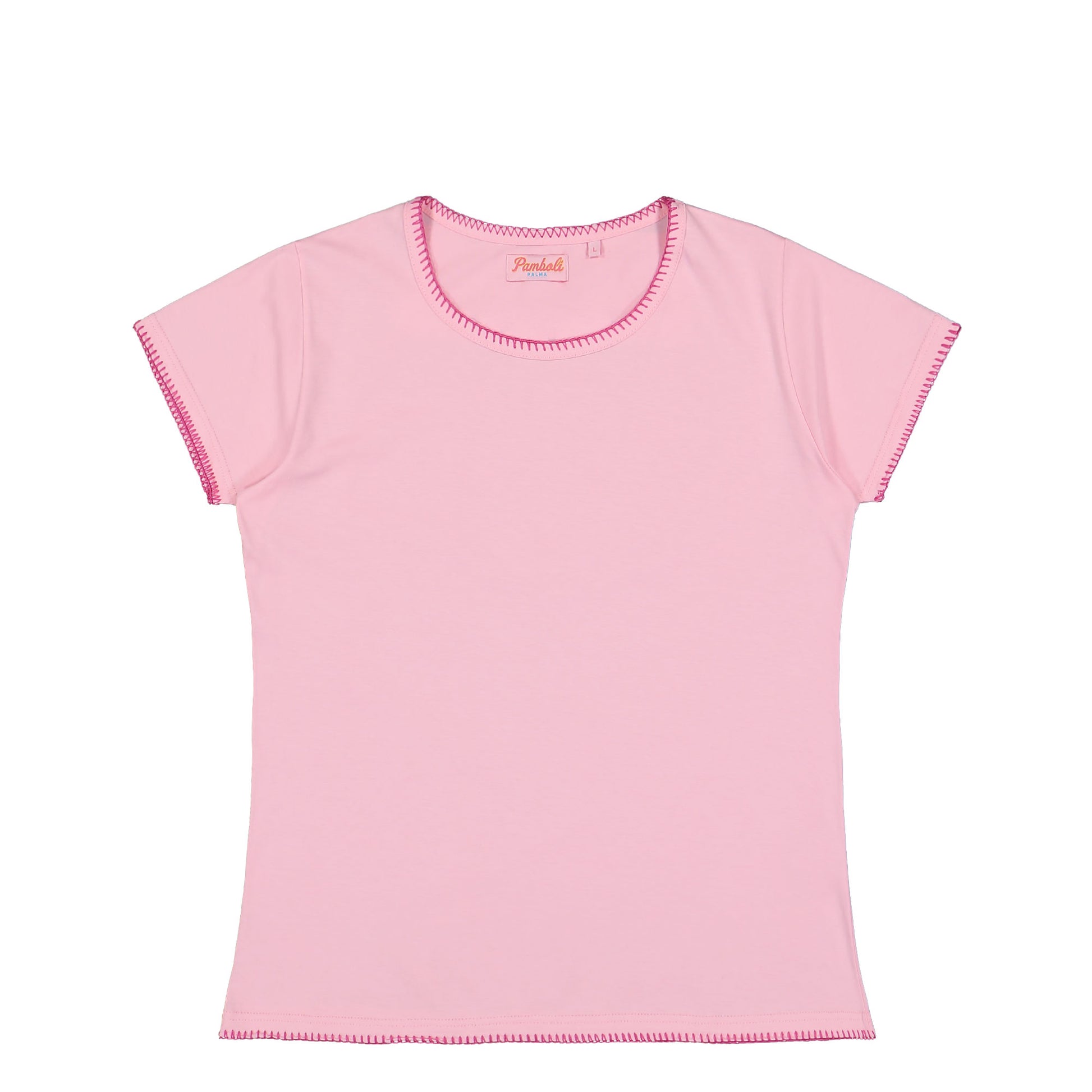 Rosé T-Shirt with embroidered edges in pink