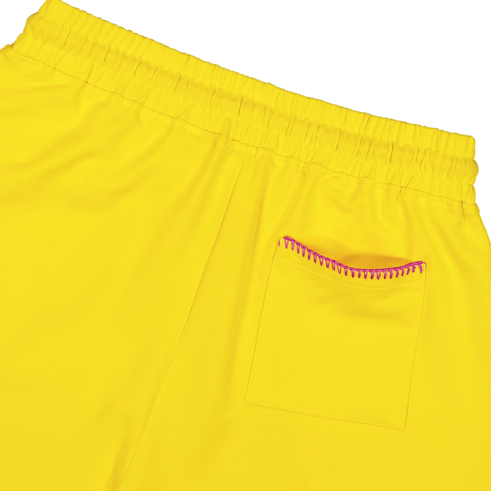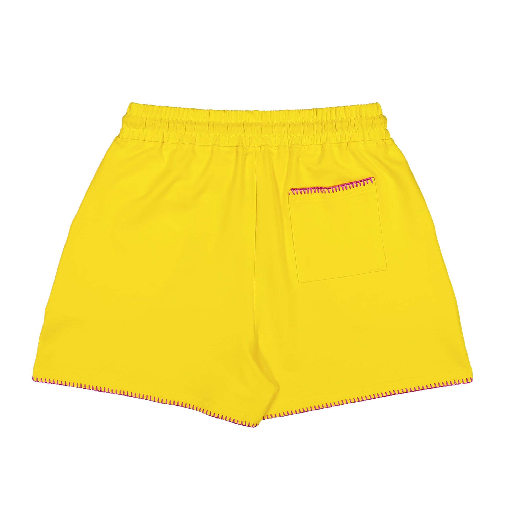 Yellow Shorts with embroidered edges in pink